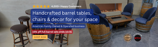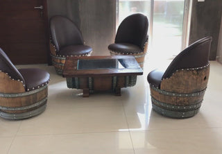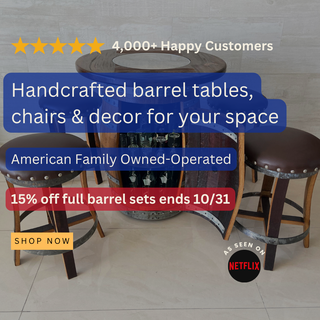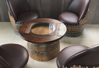 Shop our furniture handcrafted from authentic oak barrels, built to last and bring magic to any space.