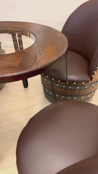 Wine Barrel Full Round Coffee Table Set with 2 Chairs - Rustic Whiskey Barrel Furniture Set - Handmade Solid Oak - Free Shipping