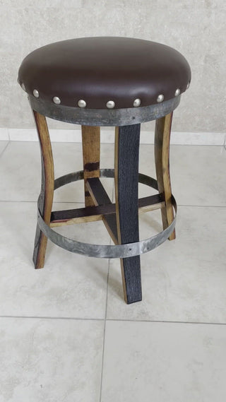 Brown Oak Barrel Bar Stool - Memory Foam Upholstery - Whiskey Barrel Stave Pub Stool - Counter Height - Handmade Wine Barrel Chair