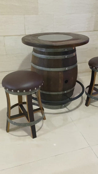 Oak Wine Barrel Whiskey Bistro Pub Table Set, Footrail, Bar Stools, Home Bar, Man Cave, Whiskey Bistro, Wine Bistro, Barrel Bar, Glass Top
