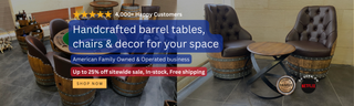 Shop our furniture handcrafted from authentic oak barrels, built to last and bring magic to any space.