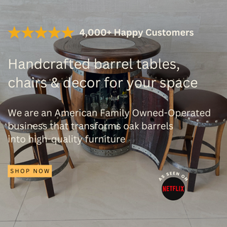 Shop our furniture handcrafted from authentic oak barrels, built to last and bring magic to any space.